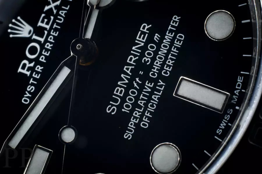 Erstaunlich ist, dass es von der Ref, 116610 LN, welches gerade einmal vier Jahre auf dem Markt ist, schon mehrere unterschiedliche Varianten gibt. O.k., dem „normalen“ Uhreninteressierten werden die Unterschiede höchst wahrscheinlich nicht auffallen. Aber Rolex Liebhaber zeichnen sich seit Jahren durch eine gewisse Detailversessenheit aus. Perfektioniert wurde diese Beobachtung von Details bei Modellen wie der Red Submariner Ref. 1680 oder der Double Red Sea Dweller Ref. 1665. Je nach Variante kann bei den alten Modellen durchaus der Preis bzw. Wert erheblich variieren. Die Details finden sich meist auf dem Zifferblatt, genauer in den Unterschieden im Druck auf dem Zifferblatt. Dinge wie die Schriftart, Schriftgröße und die Position der Schriftzüge variieren bei ein und dem selben Modell über die Jahre. Des Rätsels Lösung liegt in verschiedenen Zifferblattproduzenten, die für Rolex arbeiten. Frühere Modelle unterscheiden sich auch in der Beschriftung der Aluminium-Lünetteneinlagen (siehe Ref. 16610 LV). Dies dürfte aber mit den Cerachrom-Lünetten künftig keine Rolle mehr spielen.