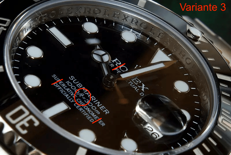 Ich bin gerade mit Begeisterung auf Deinen Blog gestoßen, super! Habe selber ne 116610LN und gerade mal aus Spaß die Details der Zifferblätter verglichen. Ich bin der Meinung, dass keines der dreien bei mir zutrifft, ich würde sagen ich habe Variante 2, aber das „=“ ist mittig über dem C. Kann das sein? Habe meine Uhr erst seit Mai 2014.